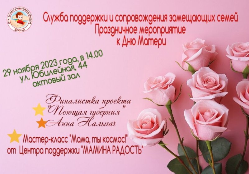 Приглашаем мам и деток на праздничное мероприятие к Дню матери! Дополнительная информация по тел.(4922)779706