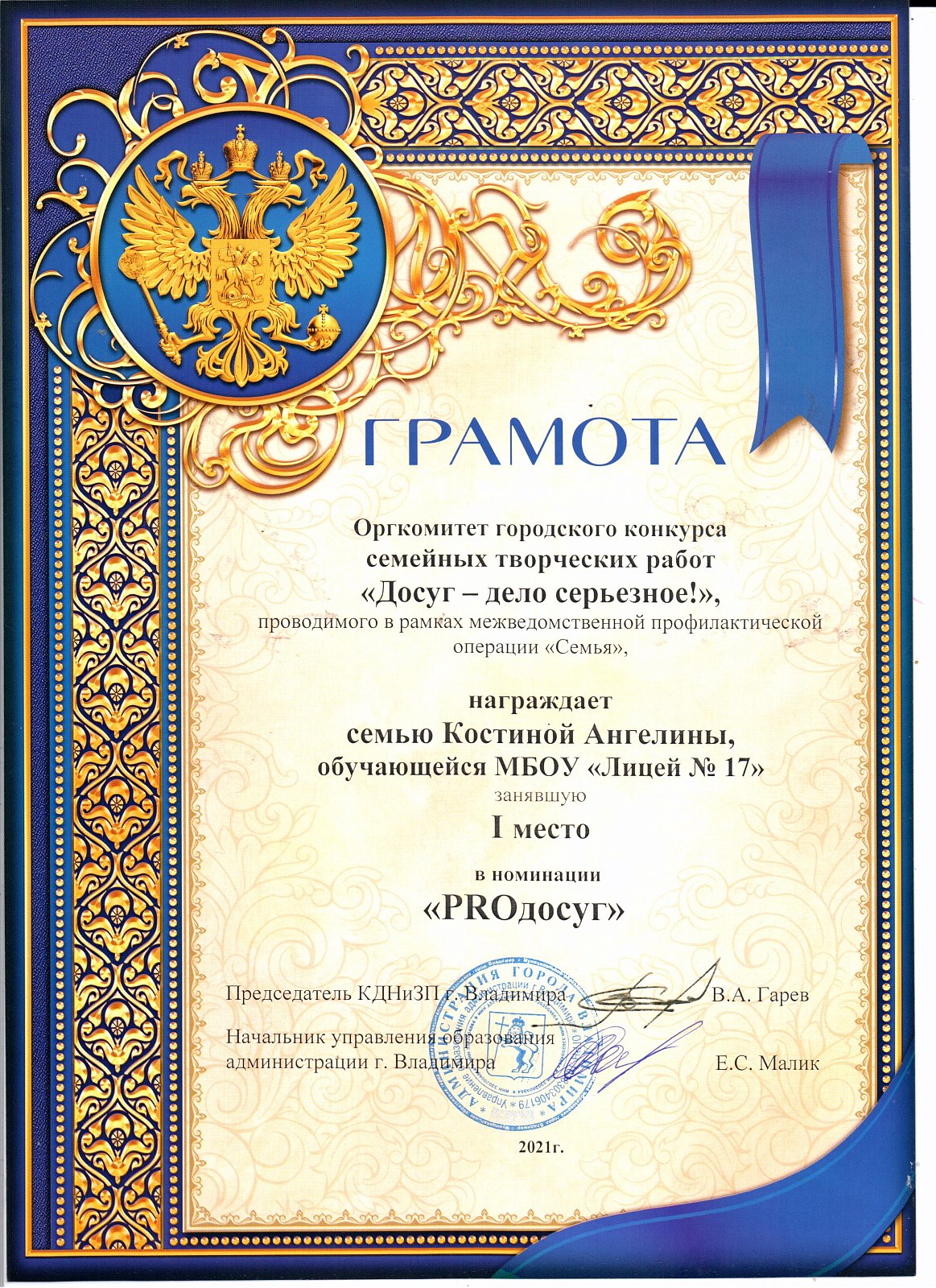 Подведены итоги городского конкурса семейных творческих работ «Досуг – дело серьезное!» в рамках проведения городской тематической правовой декады «Дети России33».