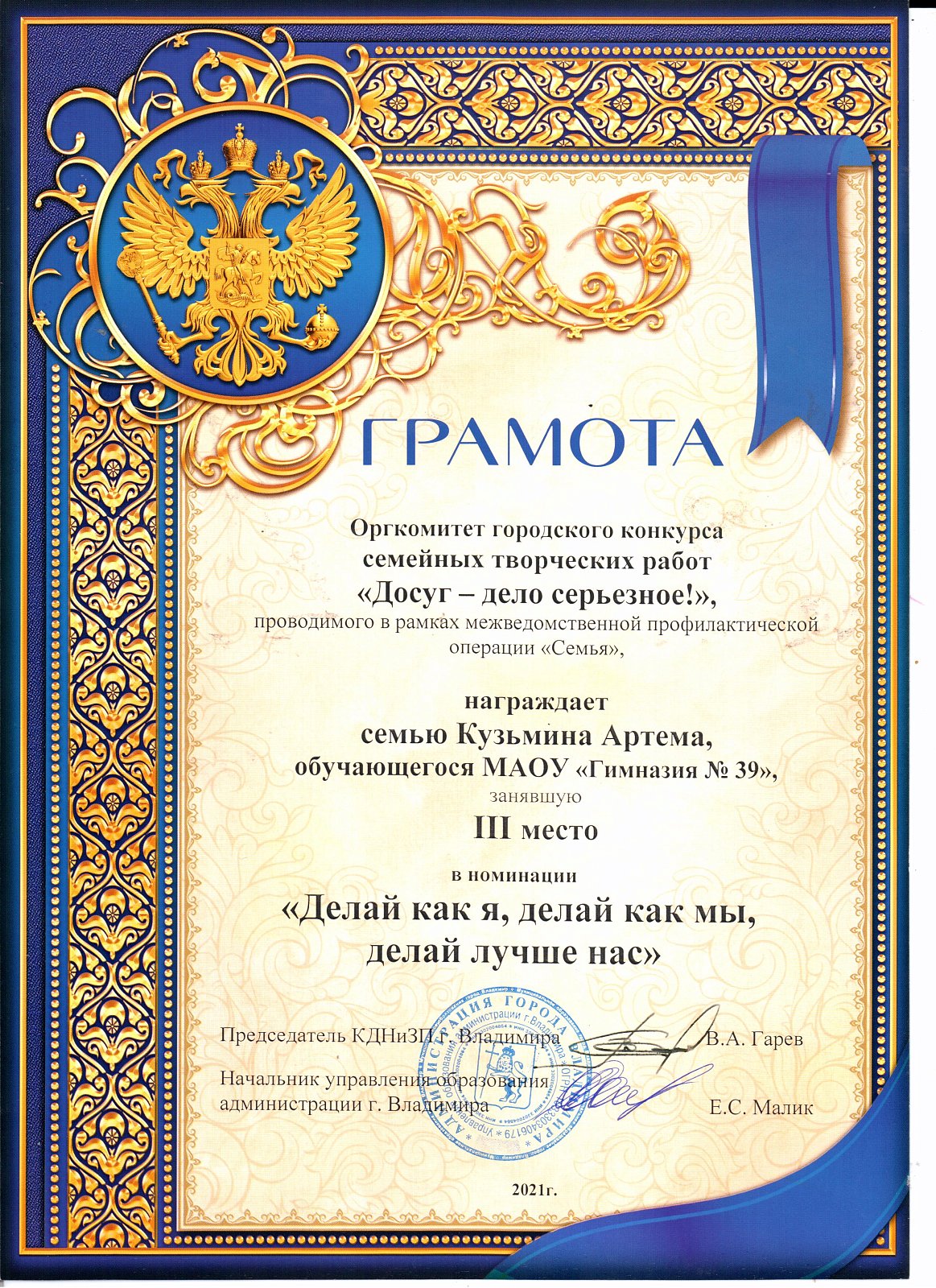 Кузьмин Артём МАОУ «Гимназия № 39» |