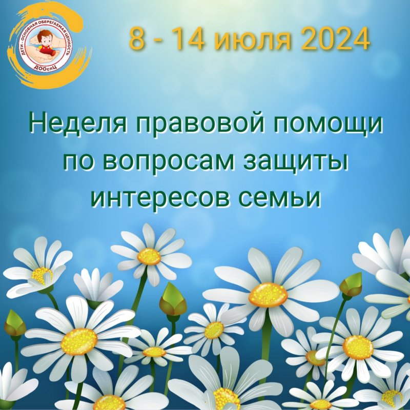 С 8 по 14 июля 2024 года во всех субъектах Российской Федерации пройдет Всероссийская неделя правовой помощи по вопросам защиты интересов семьи, приуроченная к Году семьи и Дню семьи, любви и верности - празднику, учрежденному в память святых Петра и Февронии Муромских – традиционных покровителей брака в православии.