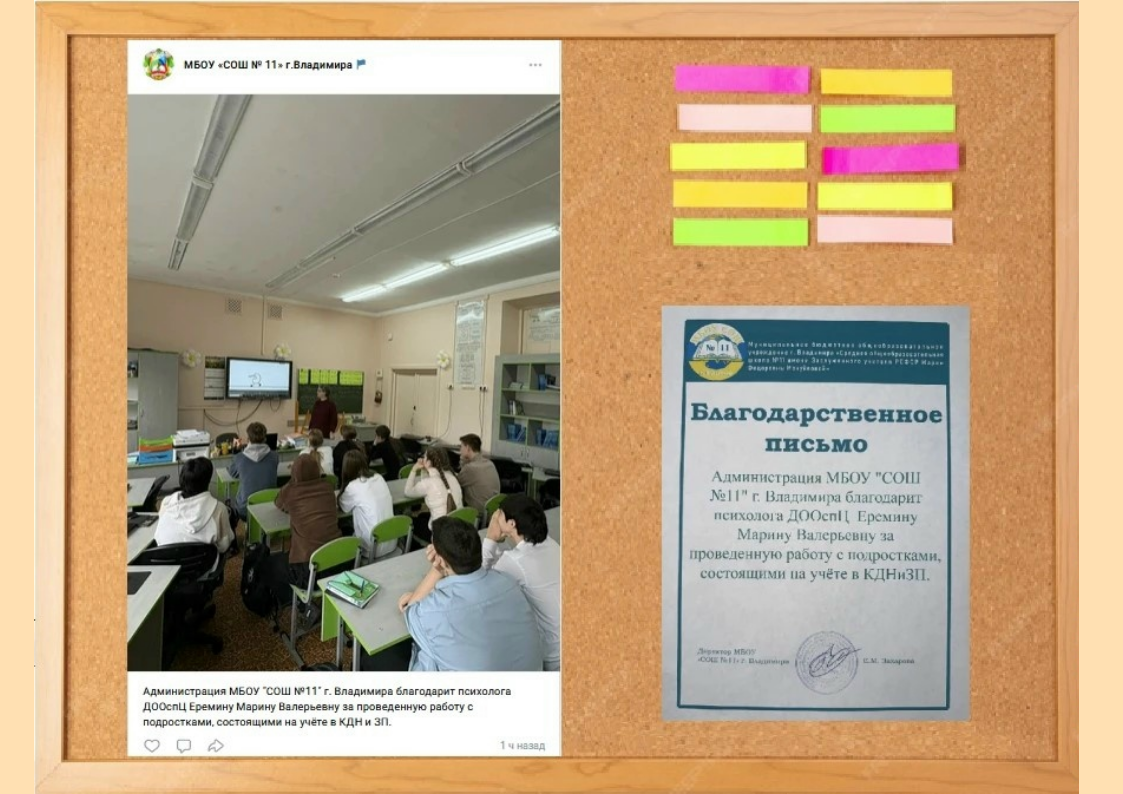 28 апреля педагог-психолог нашего Центра Еремина Марина Валерьевна провела в МБОУ «СОШ № 11» индивидуальные беседы с ребятами, стоящими на различных видах учета, а также занятие «Учимся жить без зависимостей!» с учащимися восьмых классов.
