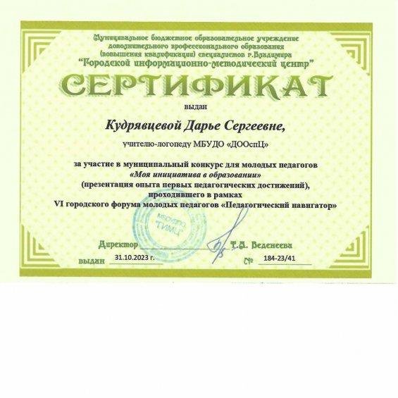 Сертификат Кудрявцевой Д.С.