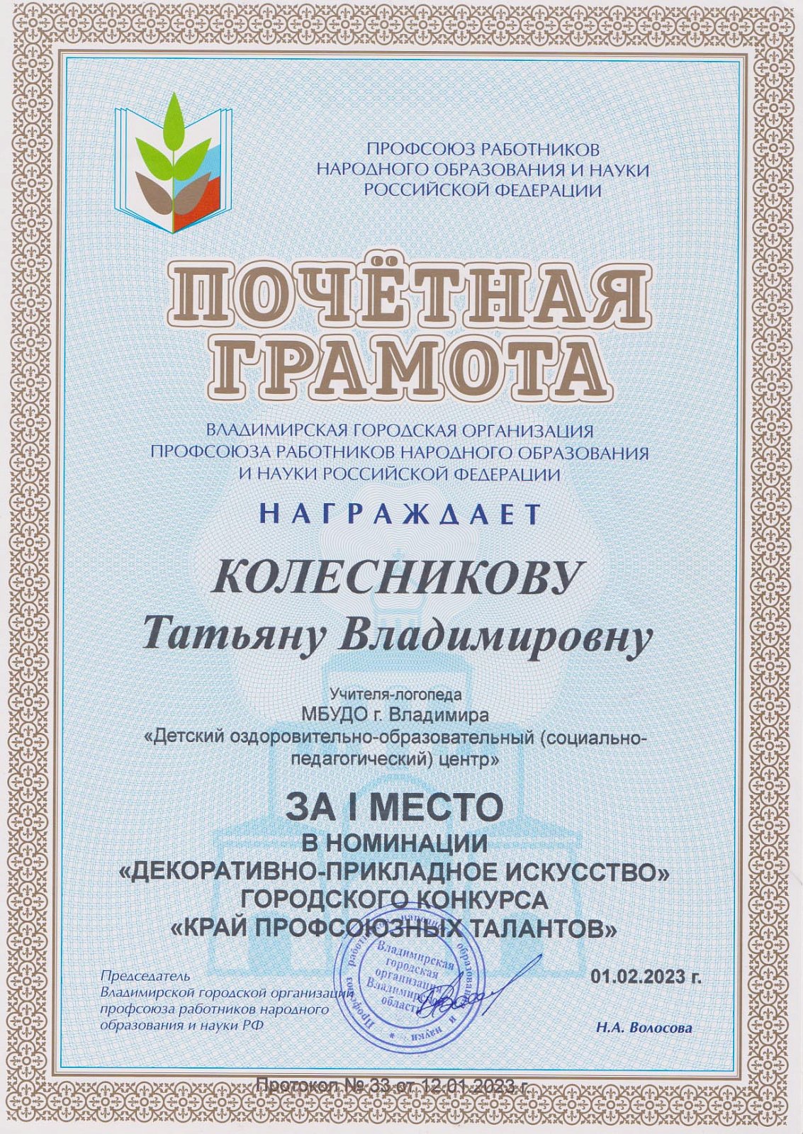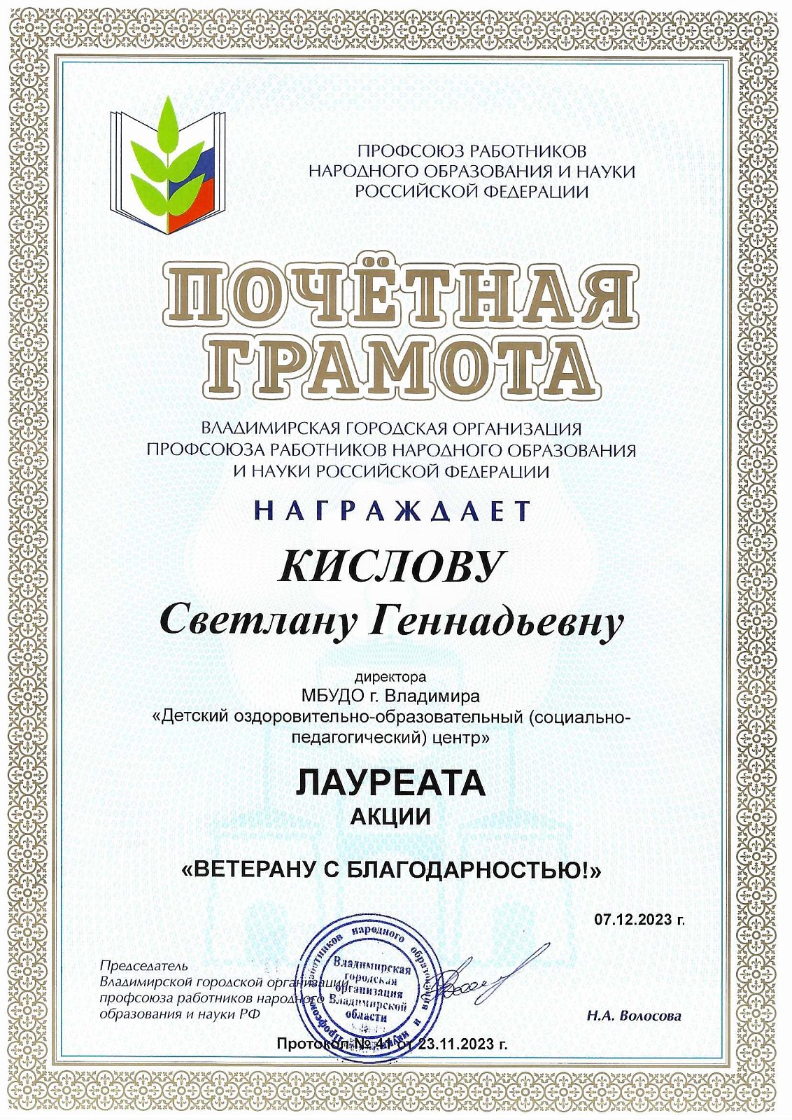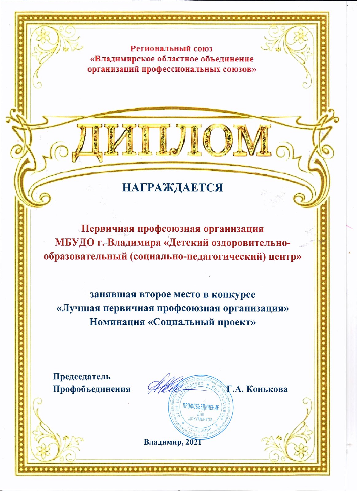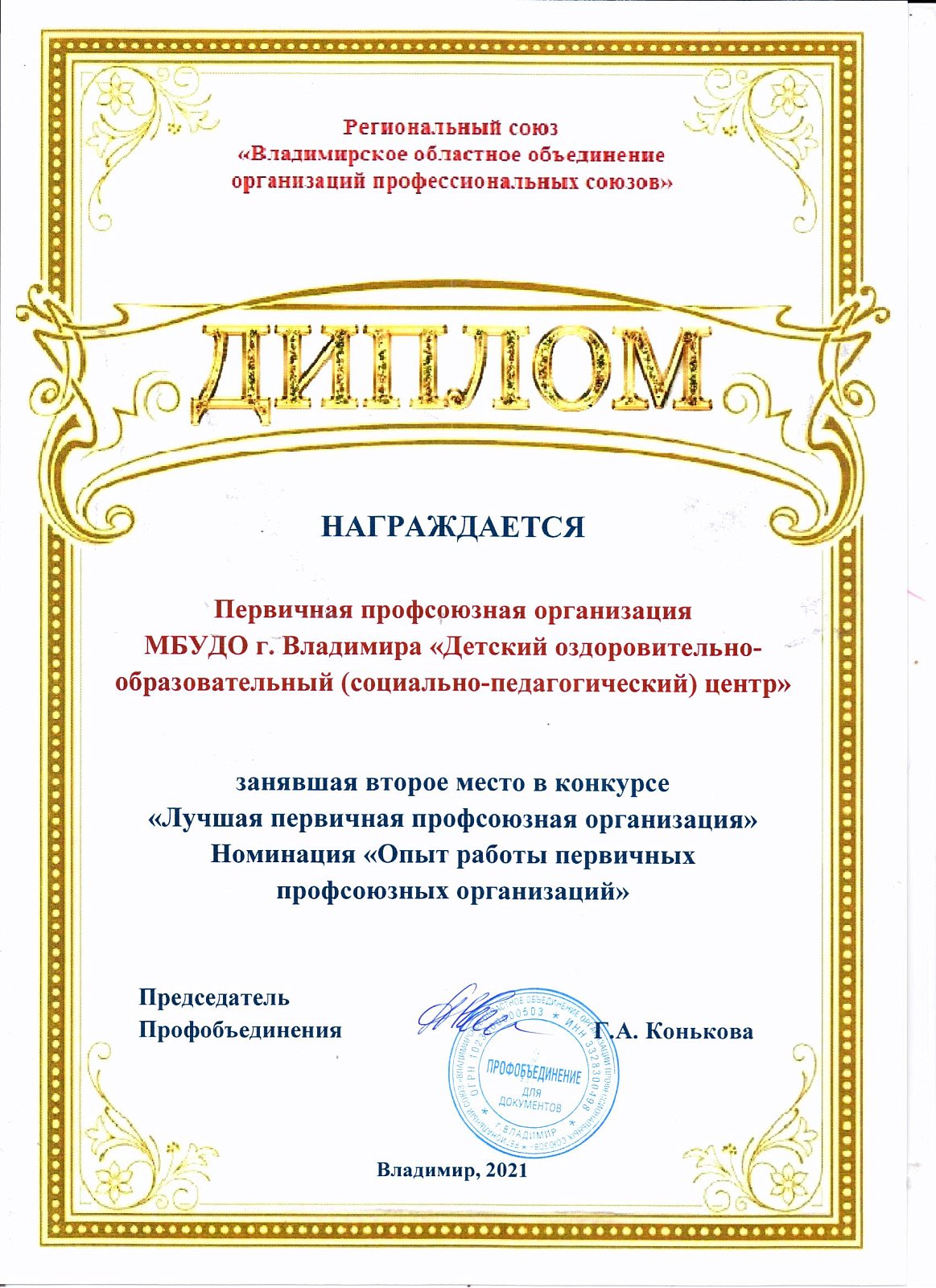 Достижения первичной профсоюзной организации МБУДО "ДООСПЦ"